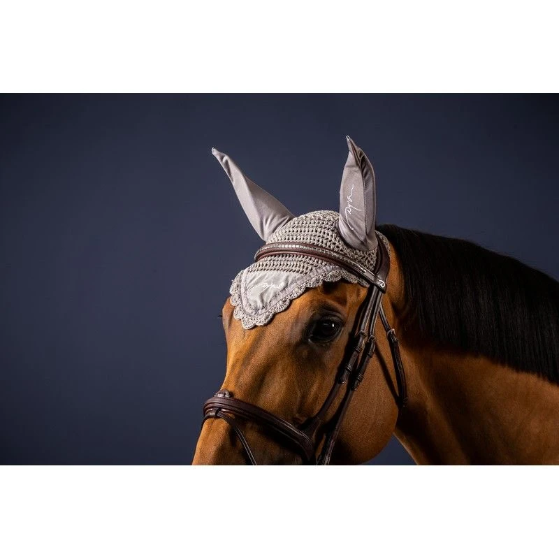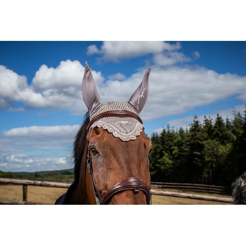 Cotton fly hat. The hat has cotton ears and the Dyon text logo is embroidered on the front and left ear. The ear net fits perfectly with the Dyon Corduroy saddle pad.