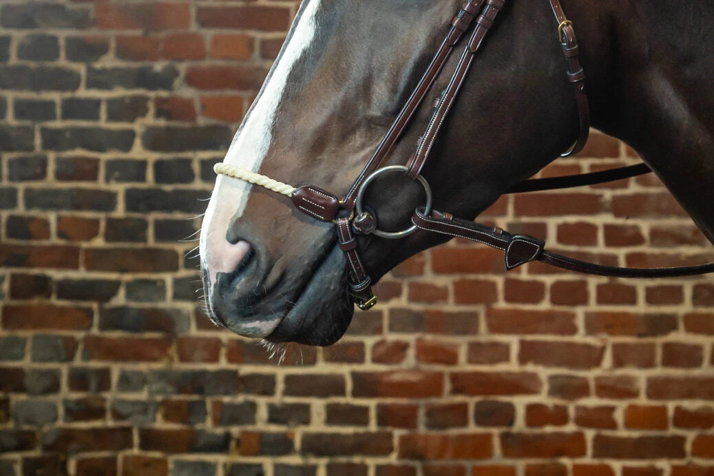 Dyon D Collection waxed drop rope noseband for extra control. This noseband has brass buckles.
