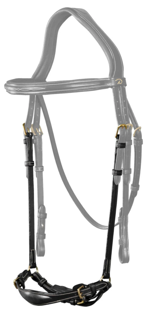 Drop noseband from the Dyon Collection line. The noseband has cream stitching and brass buckles.