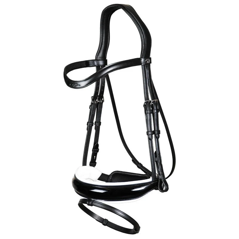 This item is part of the Dressage Collection. All items from the Dressage Collection are finished with stitching in the color of the leather and fitted with silver-coloured stainless steel buckles. The Dressage Collection is made of high-quality leather, manufactured and tanned in Spain, and is perfect for the demanding dressage rider. For example, all linings are made of sheep leather, which is smoother and softer than cow leather. Since beauty scores high in the choice of dressage bridles, the dressage collection offers a wide choice of finishes, from matt to patent leather and from white to tone-on-tone padding. In addition, the elegance and fine details always impress!