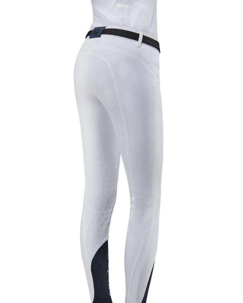 Comfortable breeches from the Eqode Basic Collection. These fashionable ladies breeches are made of a stretchy and very comfortable fabric. The breeches have Q knee grip for extra fine grip. There are 2 side pockets on the front. Elastic leg closure at bottom with Eqode text logo in contrast color.