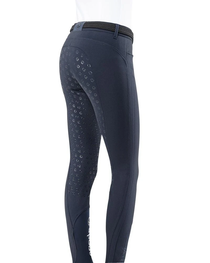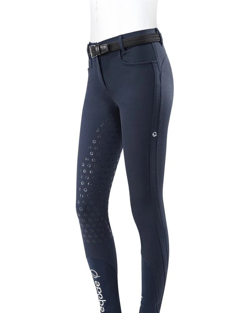 Comfortable breeches from the Eqode Basic Collection. These fashionable ladies breeches are made of a stretchy and very comfortable fabric. The breeches have Q full grip for extra fine grip. There are 2 side pockets on the front. Elastic leg closure at bottom with Eqode text logo in contrast color.