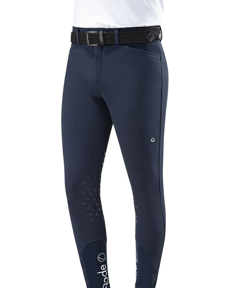 Comfortable riding breeches from the Eqode Basic Collection. These fashionable men’s breeches are made of a stretchy and very comfortable fabric. The breeches have Q knee grip for extra fine grip. There are 2 side pockets on the front. Elastic leg closure at bottom with Eqode text logo in contrast color.