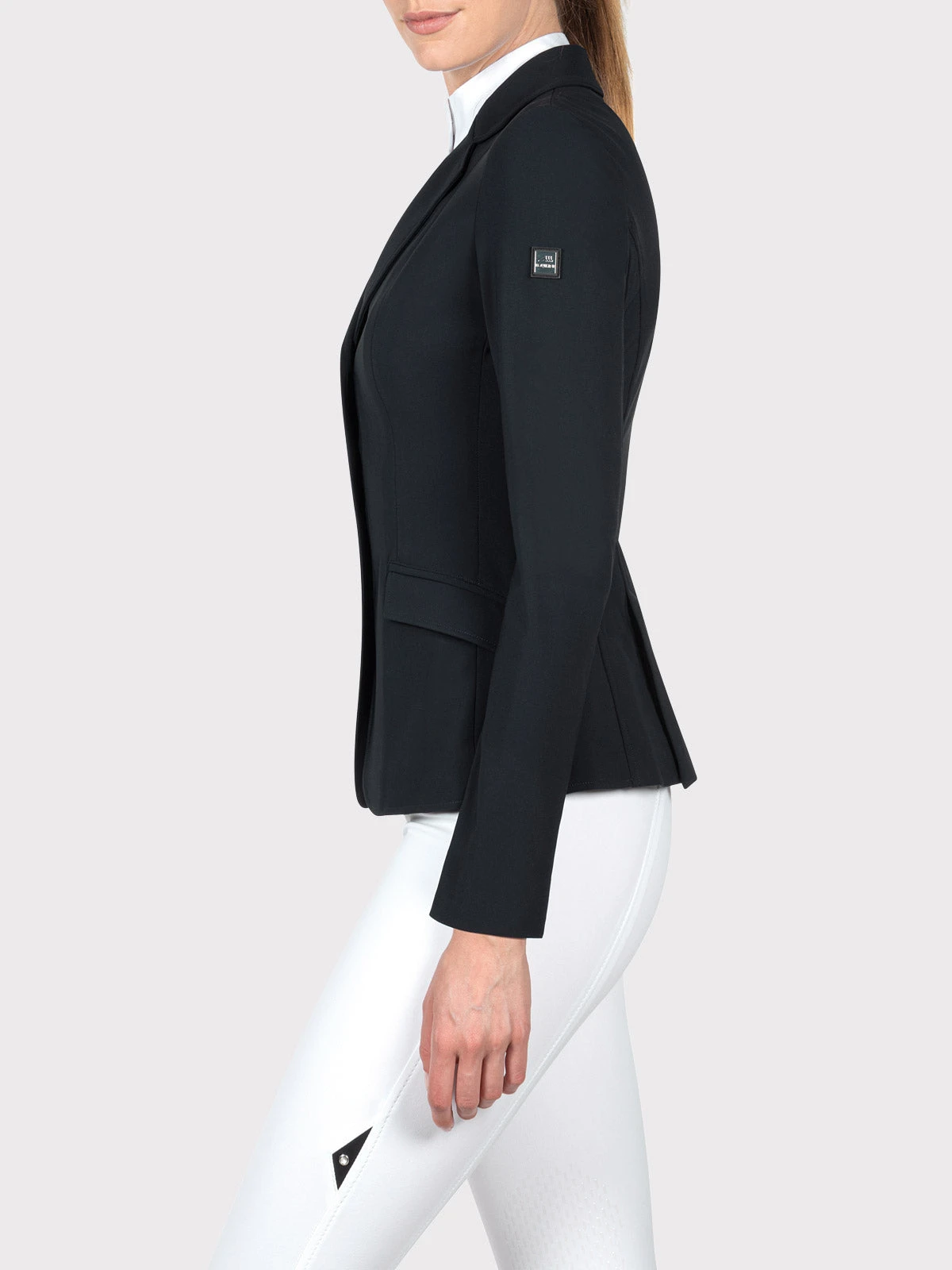 Beautiful riding jacket with a great fit. There are 2 back vents and the riding jacket has 2 front pockets with a flap. This competition jacket is made of a breathable ultra-stretch fabric. The jacket is unlined and therefore easy to maintain and light and airy to wear. Made from the new B-Move fabric.