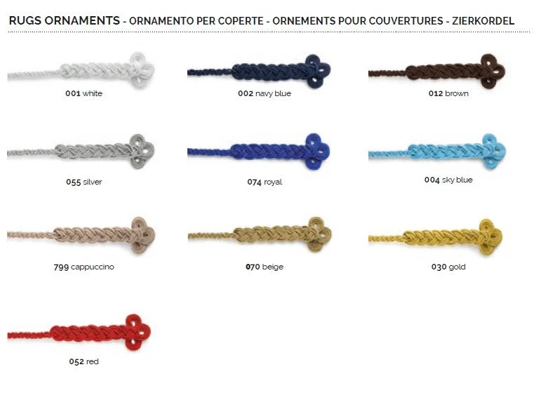 This fleece blanket from the Italian brand Equiline is made of a fine anti-pilling fleece material. The blanket has detachable cross surcingles and is customizable with a multitude of trims, cords, rhinestones and even a hip ornament! The blanket is available from size XS (back length 115 cm) to XXL (back length 215)