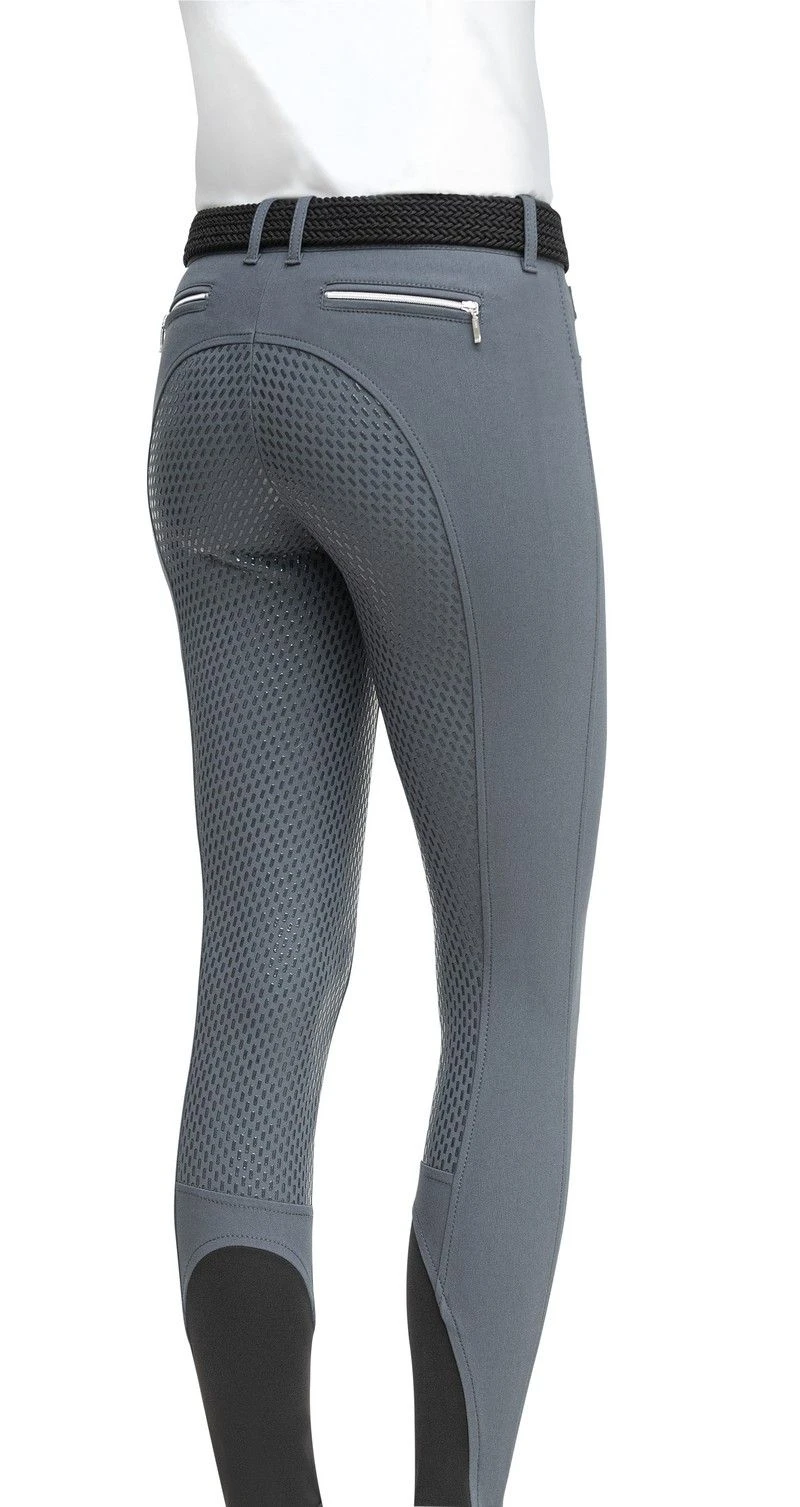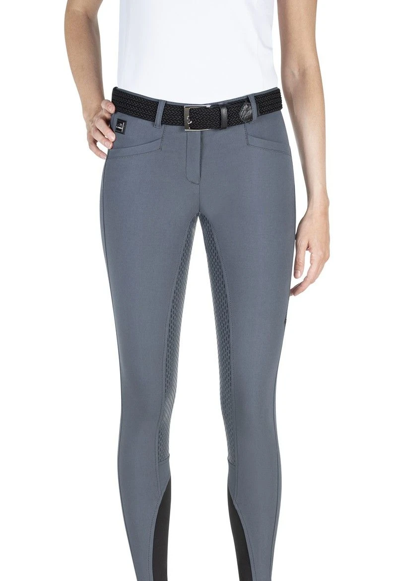Woman breeches from Equiline with X-Grip full seat. They provide the highest stability on the saddle thanks to the new grip control technology granting the maximum comfort and freedom of motion. The Waist-Block system grants an optimal fitting on the Waist. The stretch fastening system on the bottom provides a perfect adherence of the breeches on the leg without the necessity of the Velcro regulation.
