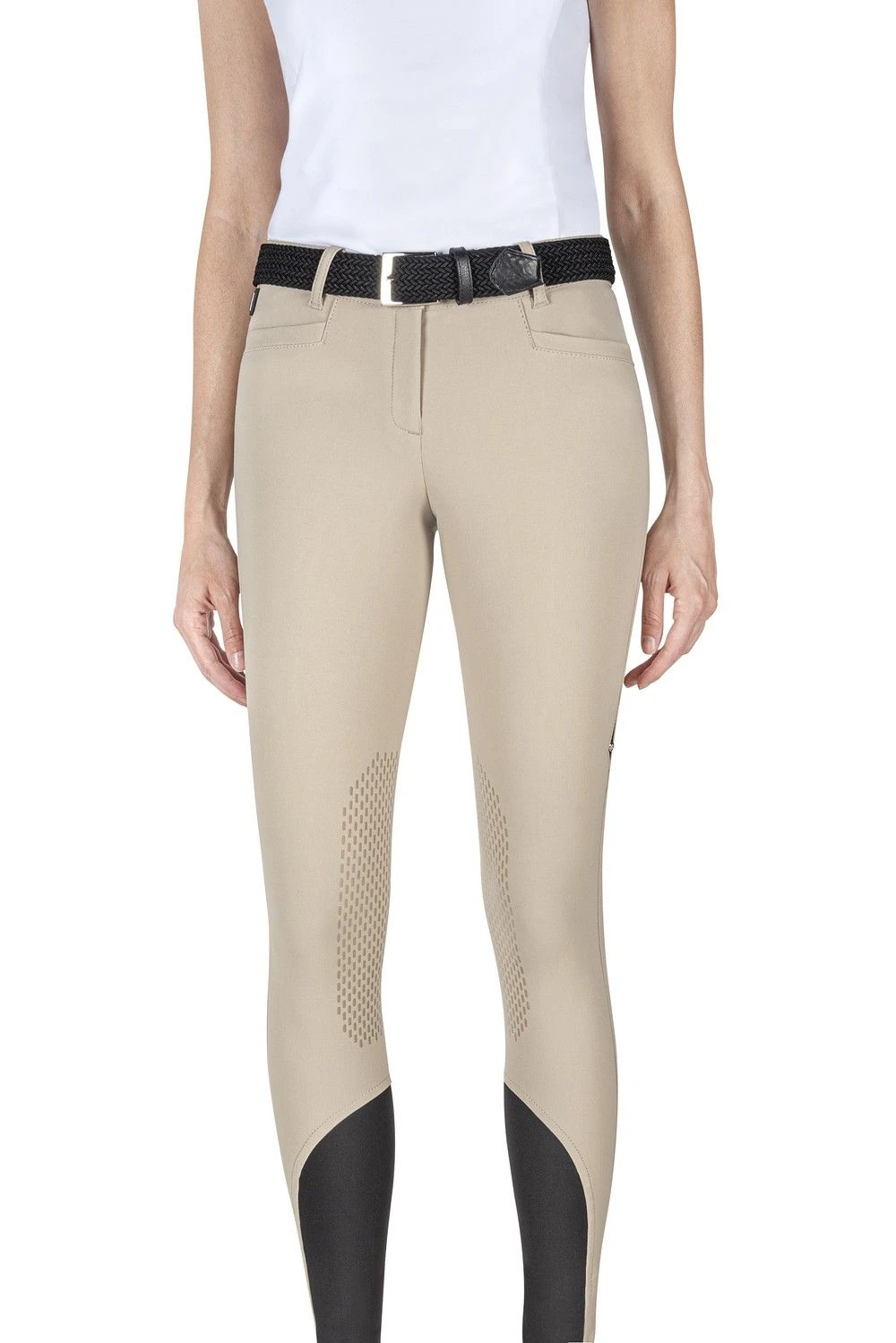 Equiline woman breeches with X-Grip knee patch. They provide the highest stability on the saddle thanks to the new grip control technology granting the maximum comfort and freedom of motion. The Waist-Block system grants an optimal fitting on the Waist. The stretch fastening system on the bottom provides a perfect adherence of the breeches on the leg without the necessity of the Velcro regulation. The sizes in the menu show the Dutch size. The Italian size minus 4 gives the Dutch size.
