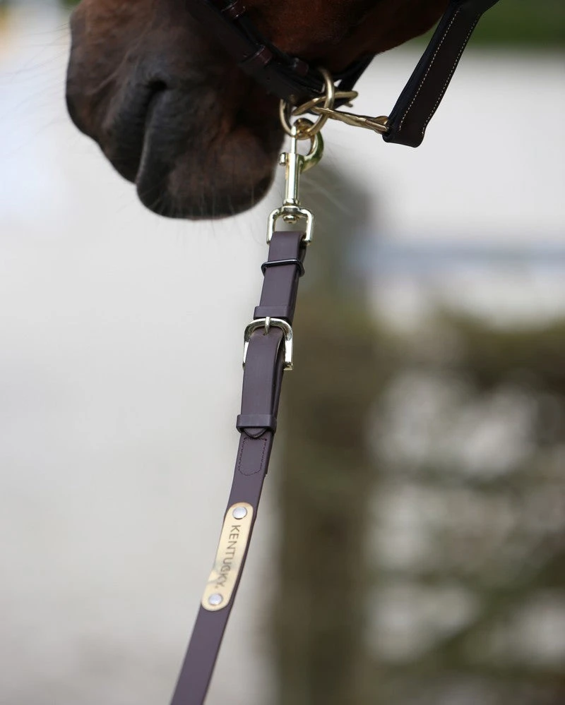 The Kentucky Horsewear Presentation Lead is 2m long and is made out of Biothane Beta. This makes the lead very strong yet flexible – even in cold weather – and pleasant to handle. De Presentation Lead doesn’t stretch out, is anti-slip and very easy to maintain as it is water-resistant. It is at your convenience to engrave the plate that can be turned over. Thanks to its many qualities, the Presentation Lead a nice and cheap alternative for the expensive leather presentation leads.