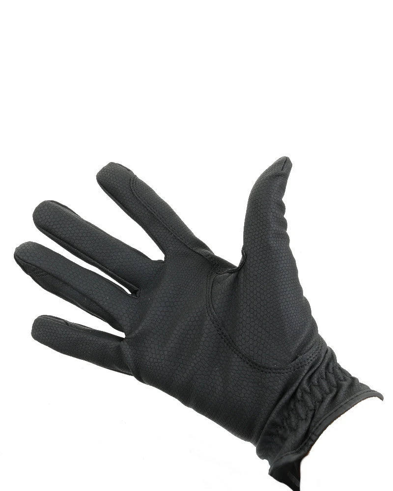 Fantastic fitting synthetic gloves from One Equestrian. These gloves are finally back in stock. All-round glove with elastic section at the top. Large velcro fastener with the One logo.