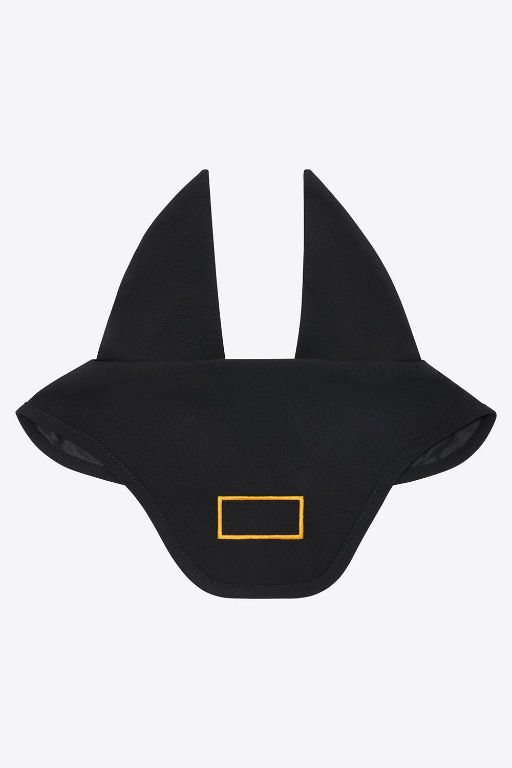 RG fly bonnet made of 100% polyester is a plain fly bonnet with normal non-elastic ears. The characteristic yellow RG logo is placed on the front. This fly hat fits perfectly with the RG saddle pad.