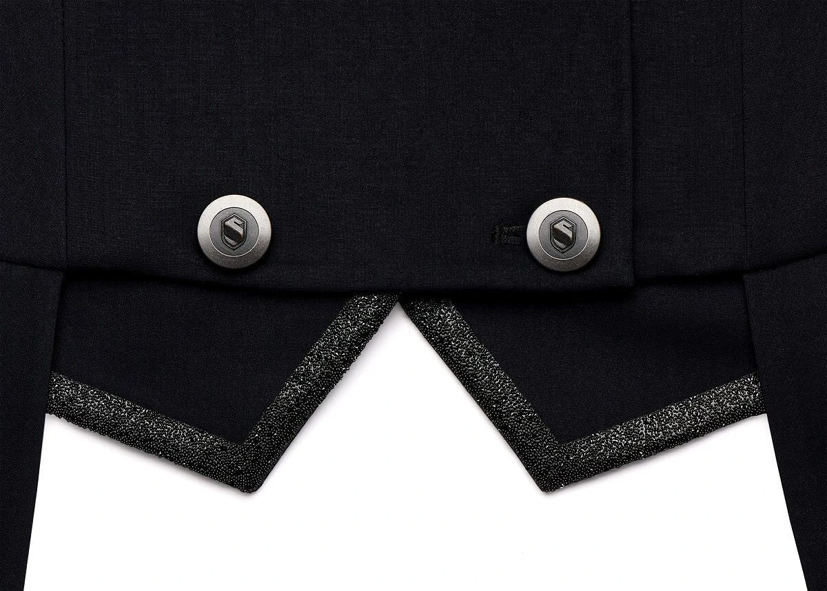 Crystal Fabric Dressage tail coat has been made from highly breathable, elastic, lightweight and durable technical fabric for best comfort. The tail coat’s inside has been made from elastic fabric and mesh material to ensure excellent air exchange without limiting the mobility. Tail coat Crystal Fabric has been adorned with Crystal Fabric Swarovski® on collar, back and martingale.