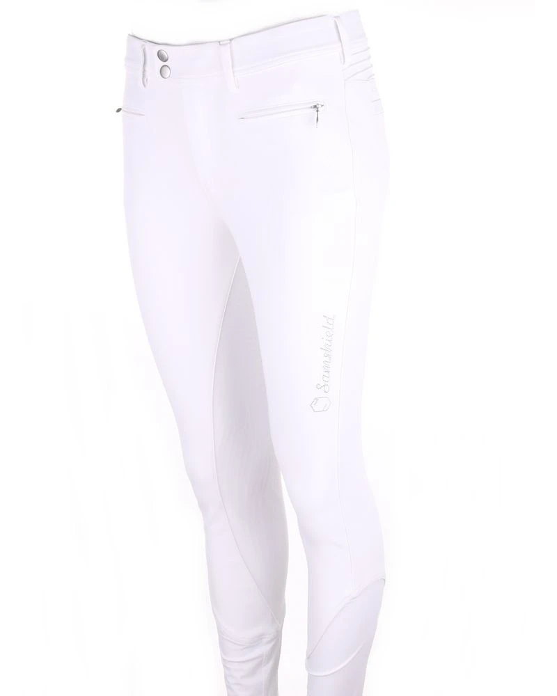 The silicone grip inside the belt prevents the shirt from rising and the compression fabric offers a perfect fit. The Diane breeches protect against ultraviolet rays thanks to the UV treatment. The breeches are decorated with a Samshield blazon made with Swarovski® crystals and with Crystal Fabric Swarovski®, combining femininity, technology and refinement.