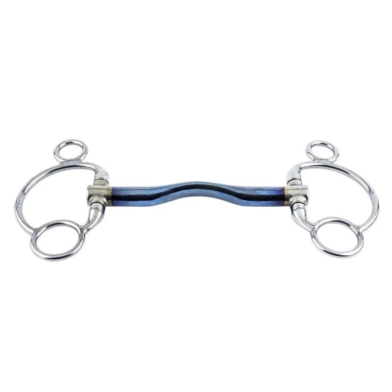 The Sweet Iron bits are made of steel and have a recognizable blue color. Sweet Iron will rust when it comes into contact with (air) humidity, the surface rust tastes sweet and naturally stimulates the saliva production. This will cause the horse to salivate more, which in turn will encourage a better acceptance of the bit.