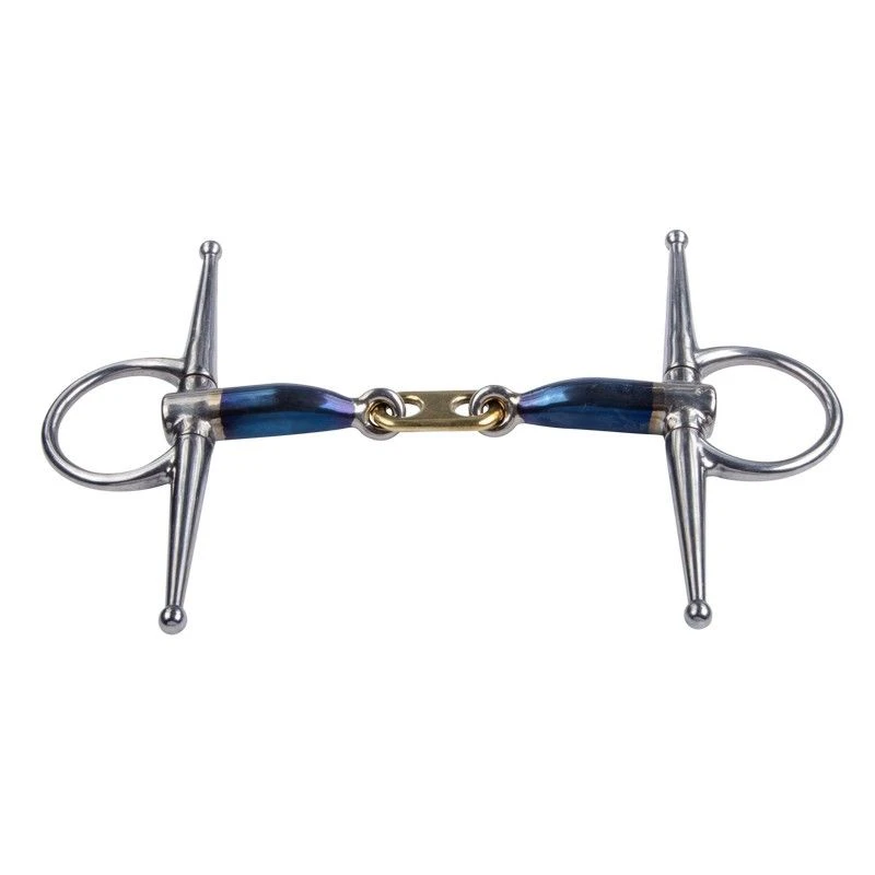 The Sweet Iron bits are made of steel and have a recognizable blue color. Sweet Iron will rust when it comes into contact with (air) humidity, the surface rust tastes sweet and naturally stimulates the saliva production. This will cause the horse to salivate more, which in turn will encourage a better acceptance of the bit.