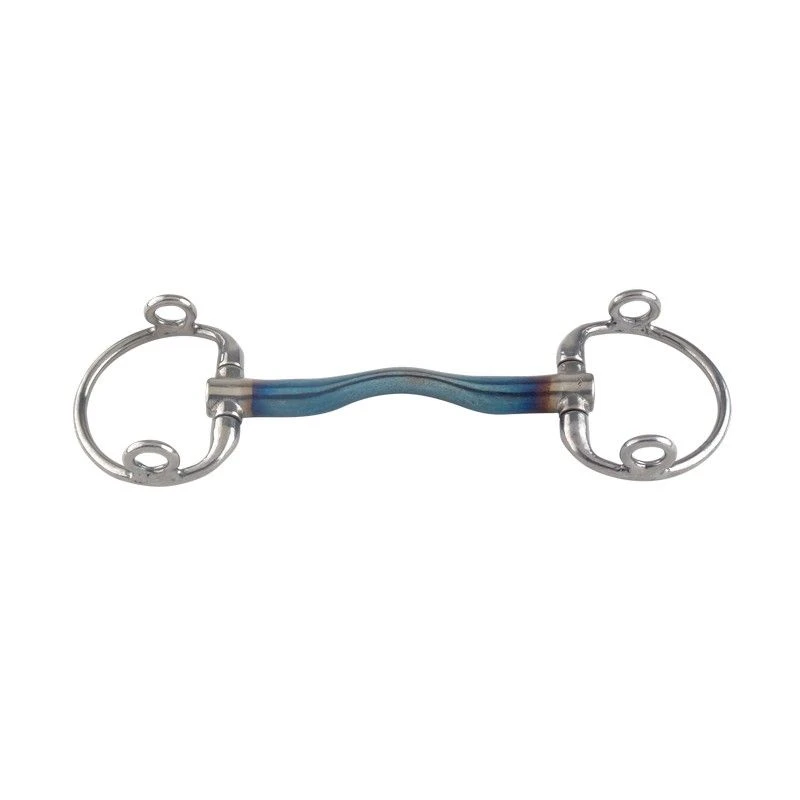 The Sweet Iron bits are made of steel and have a recognizable blue color. Sweet Iron will rust when it comes into contact with (air) humidity, the surface rust tastes sweet and naturally stimulates the saliva production. This will cause the horse to salivate more, which in turn will encourage a better acceptance of the bit.