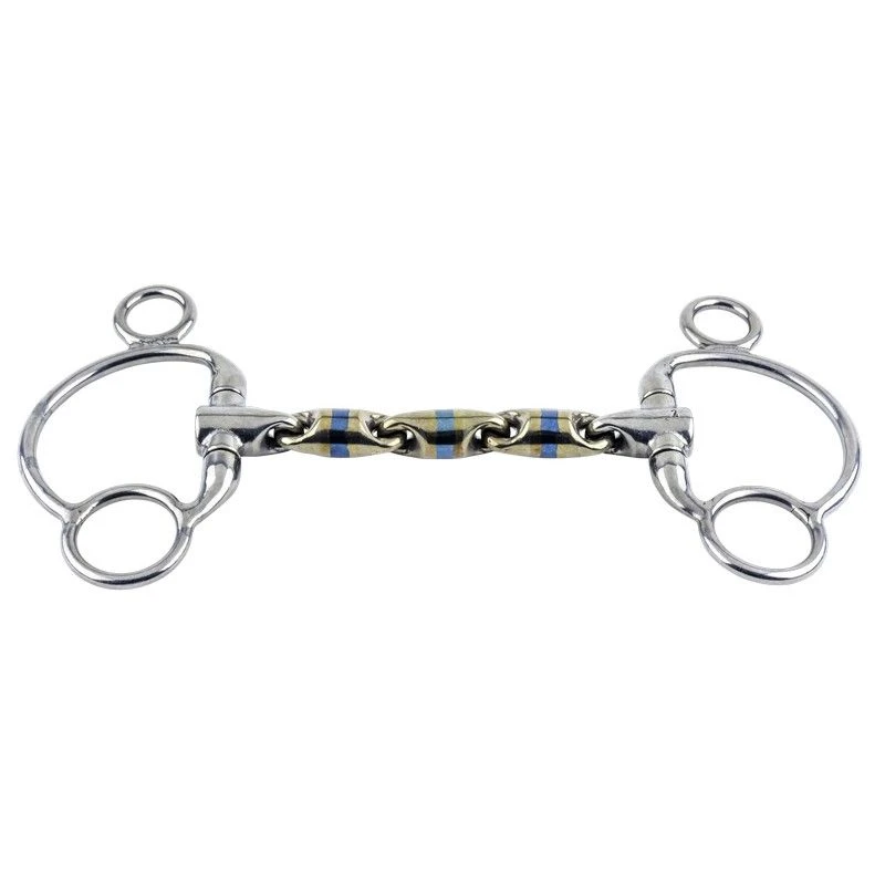 A waterford mouthpiece consists of a series of rounded links. It is a flexible bit that forms towards the horse’s mouth and creates an even pressure. It can move in all directions making it difficult for the horse to lean on the bit so that the rider retains proper control. This bit is not suitable for inexperienced riders. In soft hands this mouthpiece is friendly but with a strong hand the bit can be sharp.Â