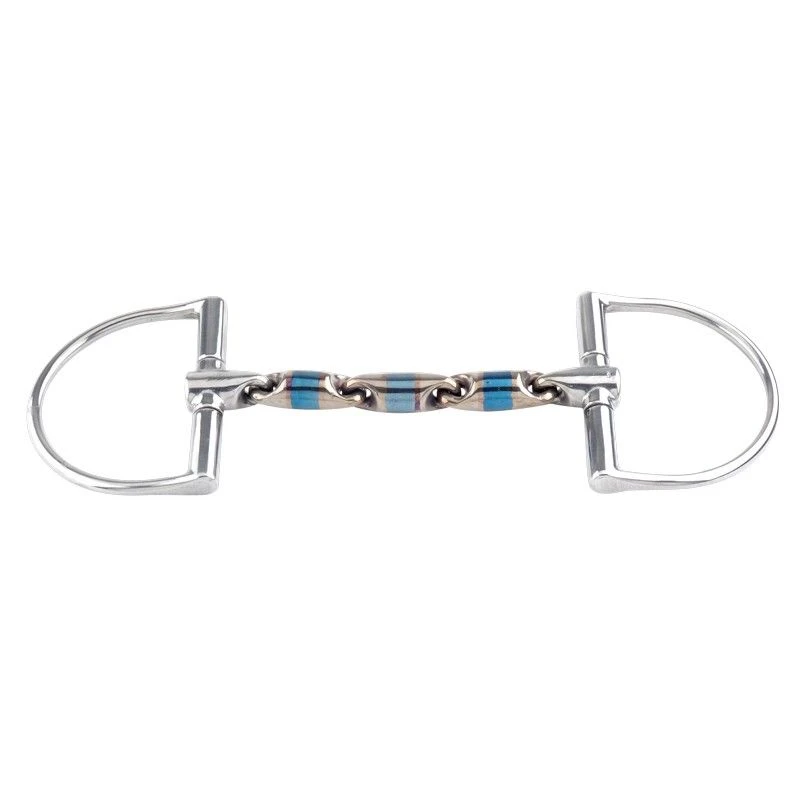 This cheekpiece has a D-shape. The D-rings ensure that the mouthpiece lies calm and stable in the horse’s mouth. The pressure of the cheekpieces against the cheek makes it easier to turn by automatically pushing the horse’s head in the right direction. This makes the bit suitable for young horses. The shape of the cheekpiece makes it less easy to pull the bit through the mouth.