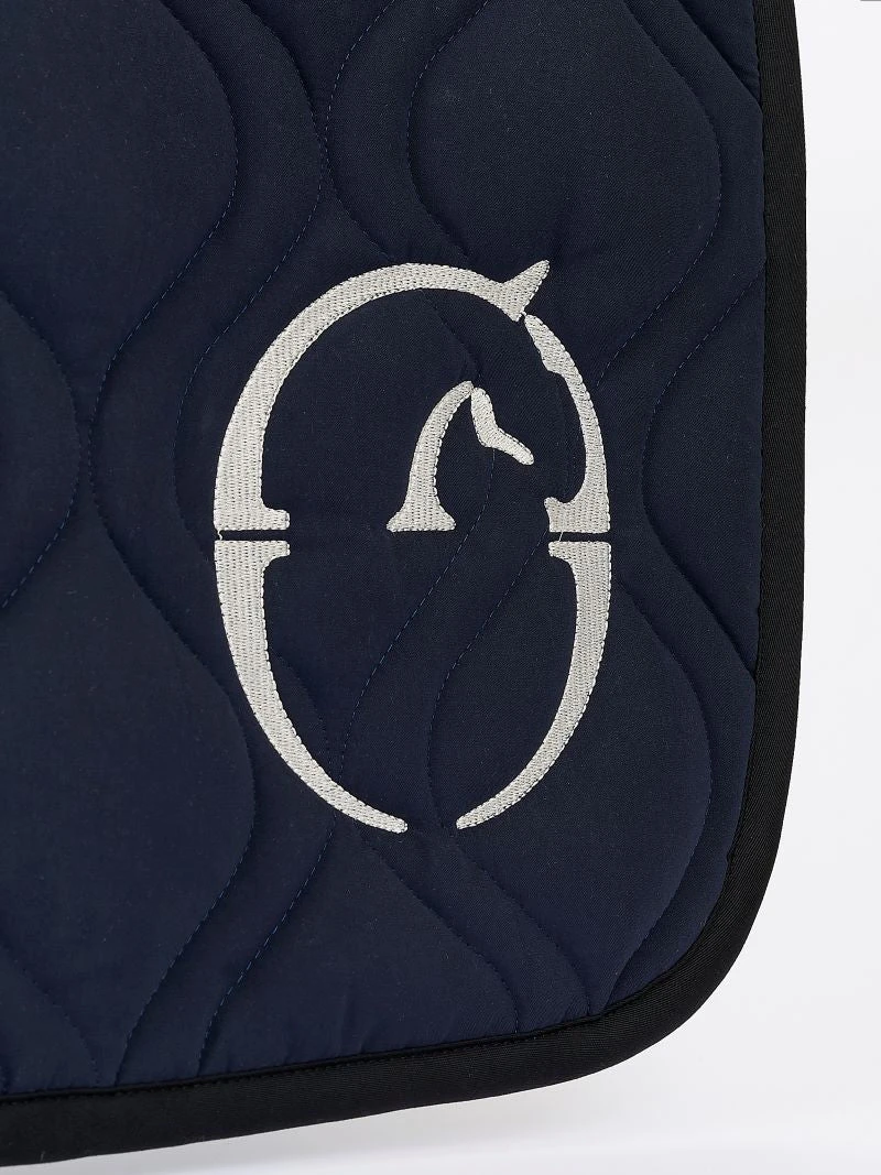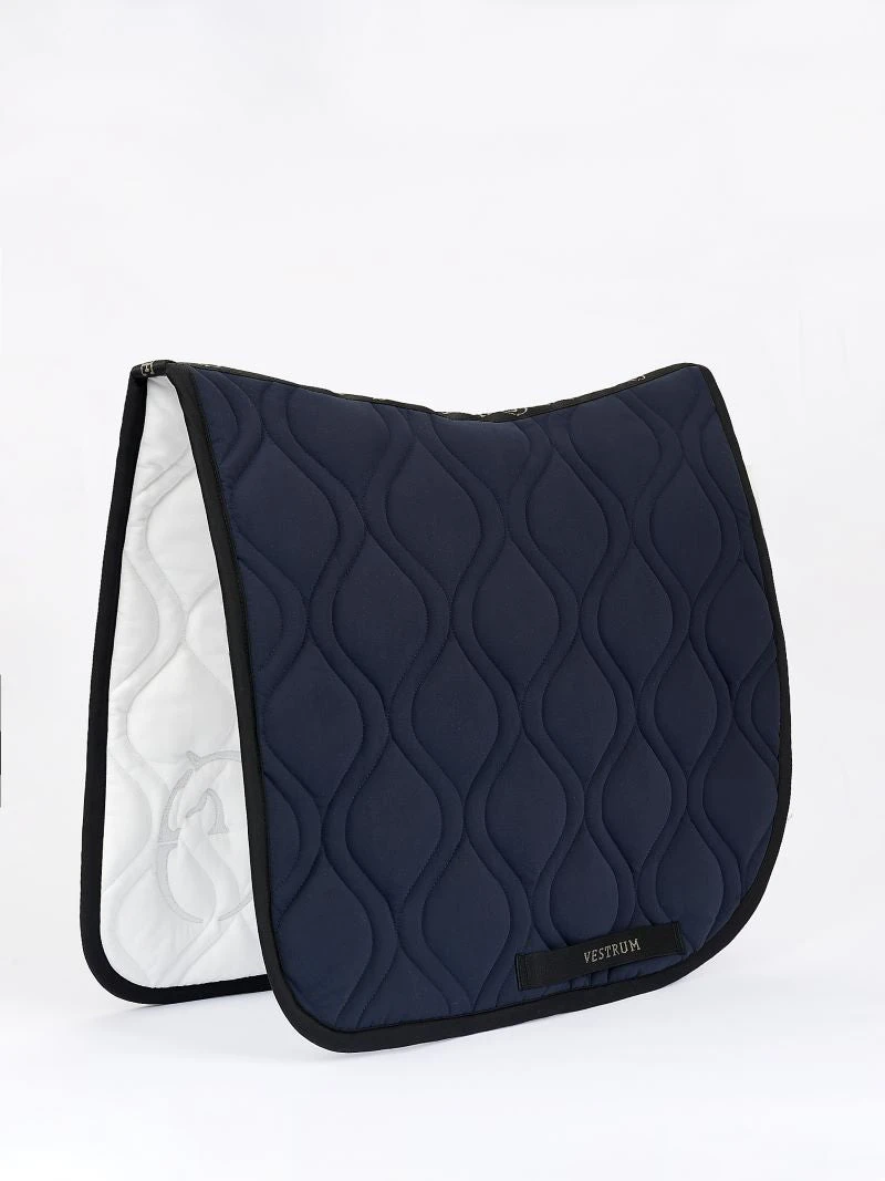 High quality saddle cloth with white poly lining and single binding in black. Vestrum logo embroidery on the left side in ecru.